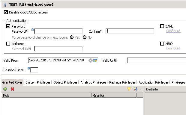 Adding PUBLIC role to restricted user in SAP HANA