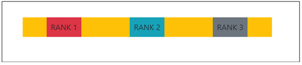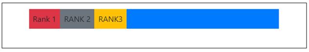 <!DOCTYPE html> <html lang="en"> <head> <title>Bootstrap Example</title> <meta charset="utf-8"> <meta name="viewport" content="width=device-width, initial-scale=1"> <link rel="stylesheet" href="https://maxcdn.bootstrapcdn.com/bootstrap/4.1.0/css/bootstrap.min.css"> <script src="https://ajax.googleapis.com/ajax/libs/jquery/3.3.1/jquery.min.js"></script> <script src="https://maxcdn.bootstrapcdn.com/bootstrap/4.1.0/js/bootstrap.min.js"></script> </head> <body> <div class="container mt-3"> <div class="d-flex justify-content-start bg-primary mb-5"> <div class="p-2 bg-danger">Rank 1</div> <div class="p-2 bg-secondary">RANK 2</div> <div class="p-2 bg-warning">RANK3</div> </div> <div class="d-flex justify-content-end bg-info mb-5"> <div class="p-2 bg-danger">RANK 1</div> <div class="p-2 bg-primary">RANK 2</div> <div class="p-2 bg-warning">RANK 3</div> </div> <div class="d-flex justify-content-around bg-warning mb-5"> <div class="p-2 bg-danger">RANK 1</div> <div class="p-2 bg-info">RANK 2</div> <div class="p-2 bg-secondary">RANK 3</div> </div> </div> </body> </html>
