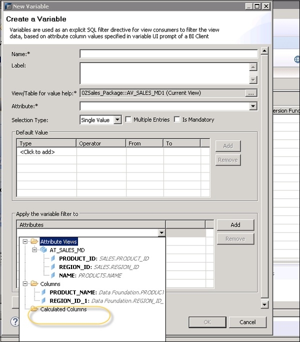 Yes, you can set a variable on top of “Calculated column”. In the bottom box, you need to select the column on which you want to set a Variable.