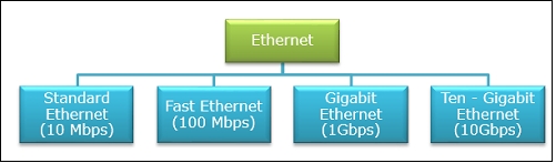 Ethernet is a set of technologies and protocols that are used primarily in LANs. However, Ethernet can also be used in MANs and even WANs. It was first standardized in the 1980s as IEEE 802.3 standard. Since then, it has gone through four generations, as shown in the following chart