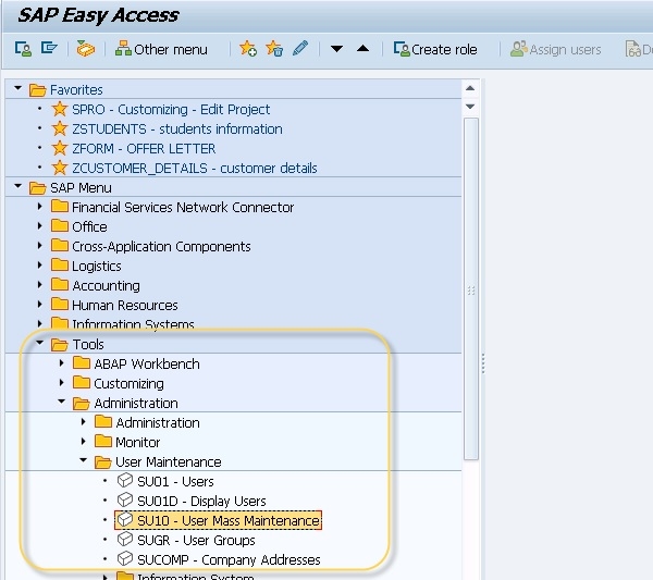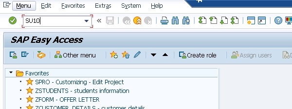 T-Code − SU10 User Mass Maintenance