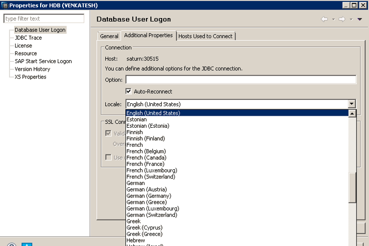 To change the language, go to Additional Properties tab in Database user logon and change the language as shown below −