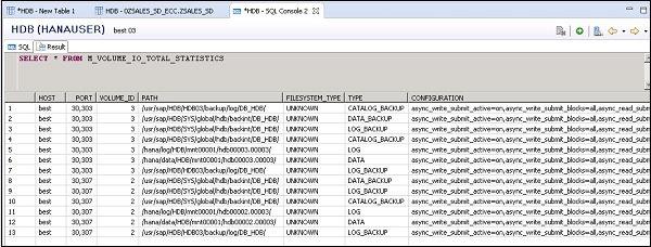 Syntax error Checking information about basic I/O operations on I/O subsystems in SAP HANA