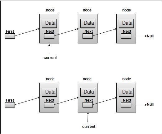 - It iterates over the list using currElem = currElem.next till currElem doesn't become null, ie, we've not reached the end.