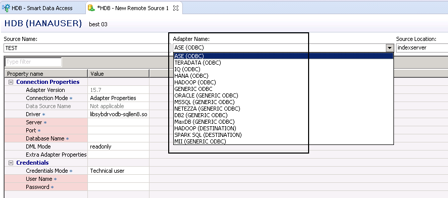 Creating new Remote Source using SDA in SAP HANA