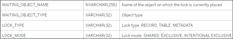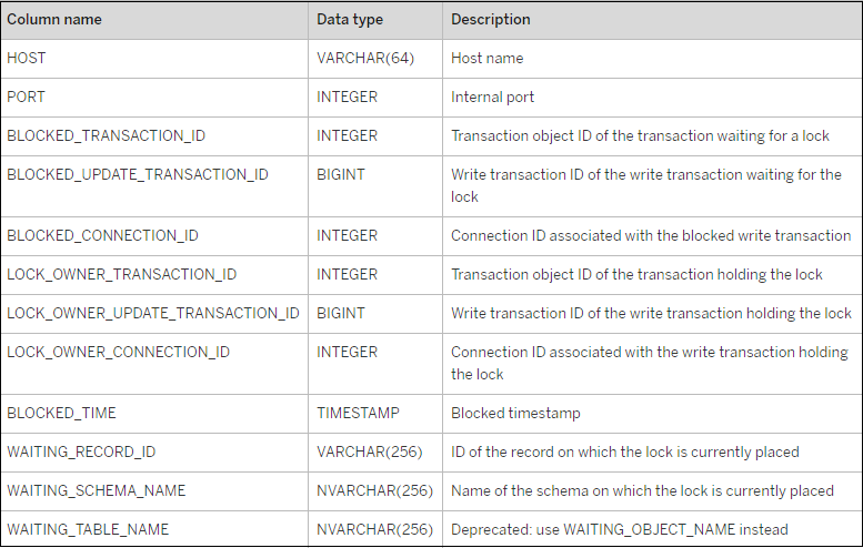 The following information is available under SAP HANA M_BLOCKED_TRANSACTIONS System View