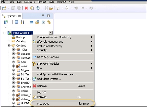 To check your system license, you have to select HANA system in Studio → right click → Properties