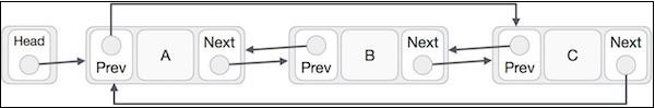 In the doubly linked list, the next pointer of the last node points to the first node and the previous pointer of the first node points to the last node making the circular in both directions.