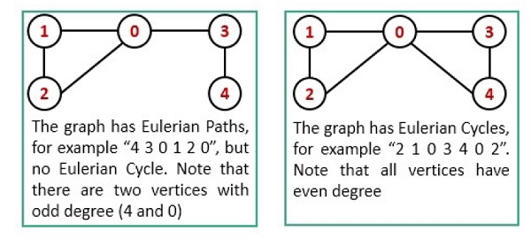 Output − Returns 0, when not Eulerian, 1 when it has a Euler path, 2 when Euler circuit found