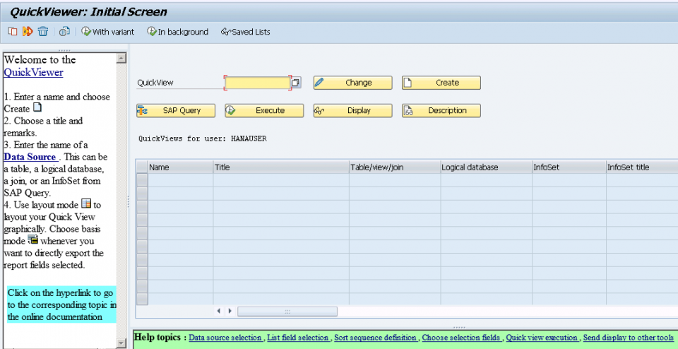 Identify the user specific SQVI queries in ABAP/BAPI. With use of QucikViewer (SQVI), it is a tool for generating reports. SAP Query offers the user a whole range of options for defining reports.