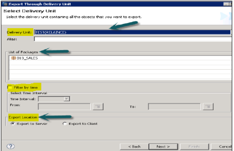 While export a delivery unit, you can restrict the export through “Filter by time” which means Information views, which are updated within the mentioned time interval will only be exported.