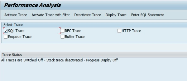 To activate trace, you can select Activate Trace with Filter option. You can select different filters like −