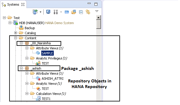 HANA Modeling objects and Content folder in SAP HANA Studio