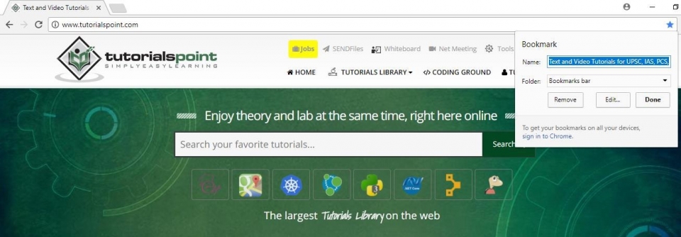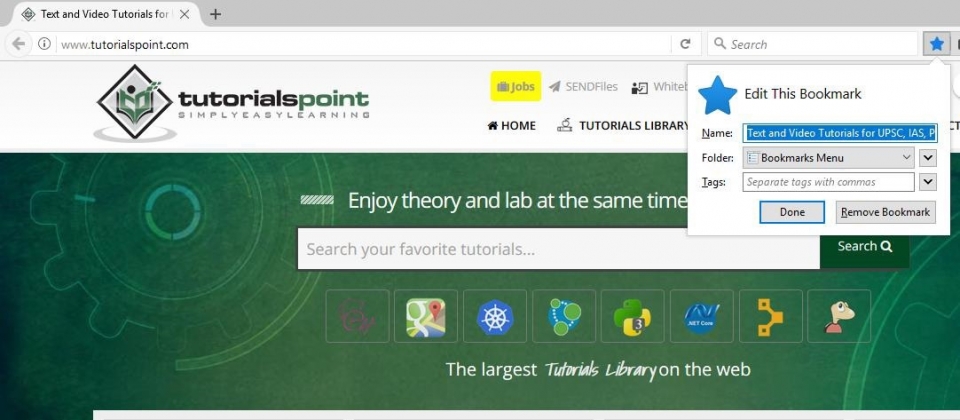 In this way, all the bookmarks get saved like this on pressing Ctrl+D. The star sign as you can see below also allows you to add a bookmark −
