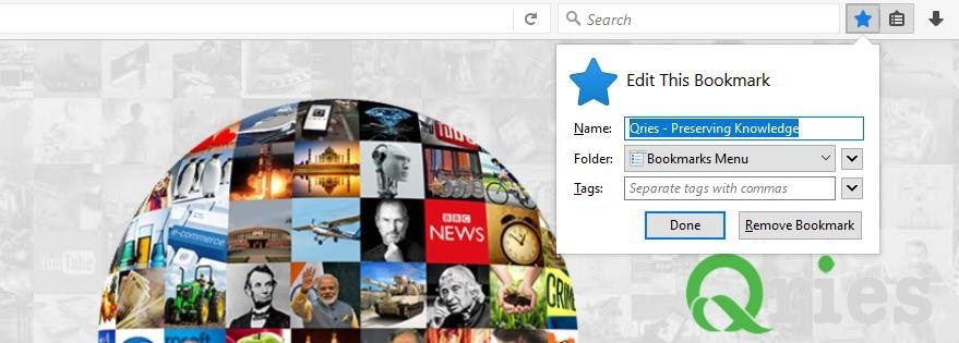 Bookmarks in a web browser are saved so that it can be referred. It is also known as favorite web pages. To Bookmark a web page, visit the page and press Ctrl+D. This will give you an option to save the web page.
