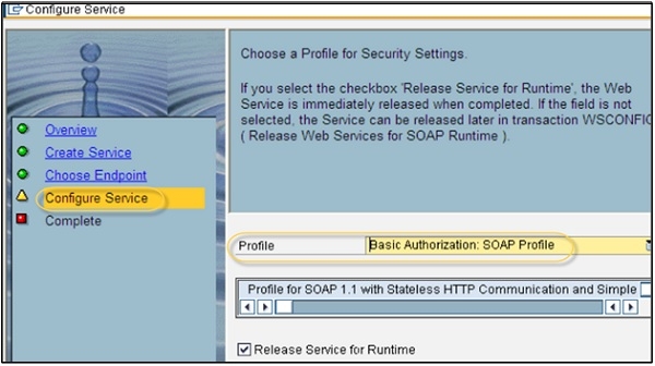 When you navigate to configure service, you need to select SOAP profile from drop down as below −