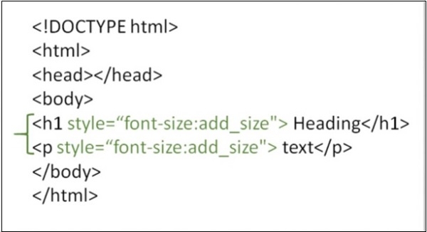 <!DOCTYPE html> <html> <head> <title>HTMLFont size</title> </head> <body> <h1 style="color:red;font-size:40px;">Heading</h1> <p style="color:blue;font-size:18px;">This is demo text</p> </body> </html>