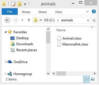 Now a package/folder with the name animals will be created in the current directory and these class files will be placed in it as shown below.