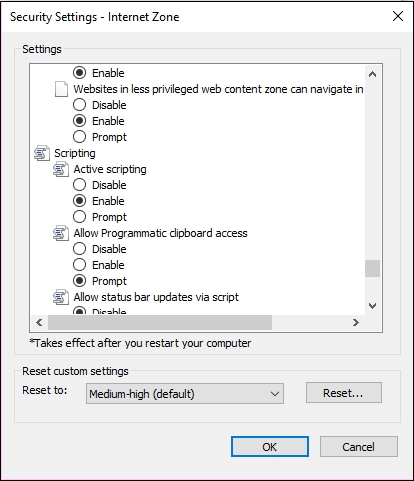 Enabling Active Scripting