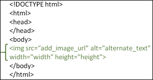 To use an image on a webpage, use the <img> tag. The tag allows you to add image source, alt, width, height, etc. The src is to add the image URL. The alt is the alternate text attribute, which is text that is visible when the image fails to load. With HTML, add the image source as another domain URL. For that, add the src attribute as a link to another domain.