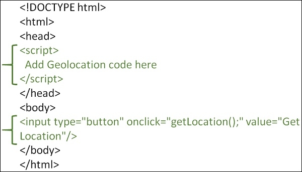 <input type="button" onclick="getLocation();" value="Get Location"/>