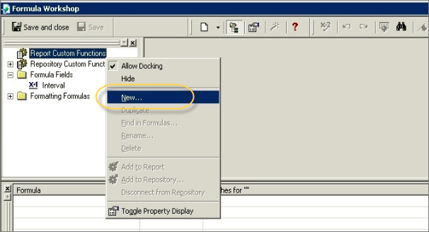 To create custom functions in Crystal Report, navigate to Report Menu → Formula Expert → Right Click on Custom Functions → New