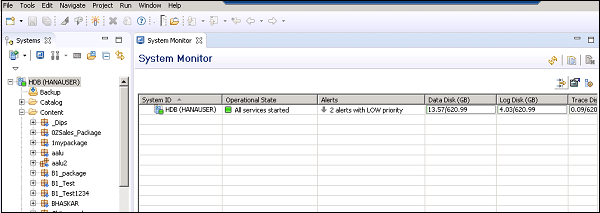 Information available under System Monitor in SAP HANA