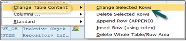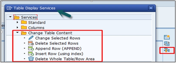 You can find the option to either insert a row into a table or change the content of the table using the Table tools/Table display services