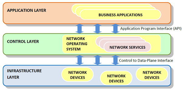 - INFRASTRUCTURE LAYER − Also called the Data Plane Layer, this layer contains the actual network components. The network devices reside in this layer that shows their network capabilities through the Control to data-Plane Interface.