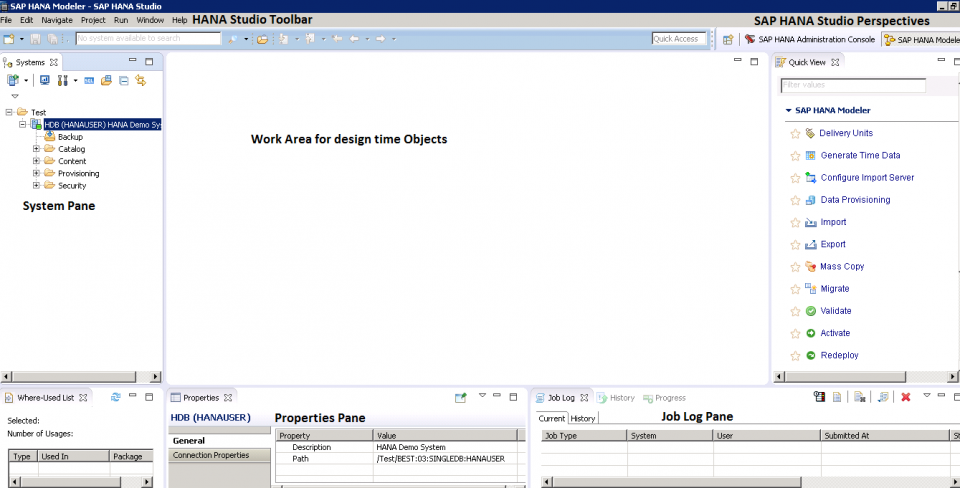 On right side you have Modeling Perspectives, under which you can see multiple options inside it. In SAP HANA Studio you have the options to access different perspectives that can be used to perform variety of different functions.