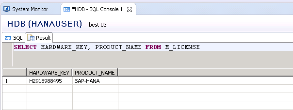 SELECT HARDWARE_KEY, PRODUCT_NAME FROM M_LICENSE