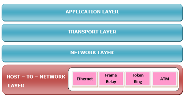 The following diagram depicts the host-to-network layer in the TCP/IP protocol suite −