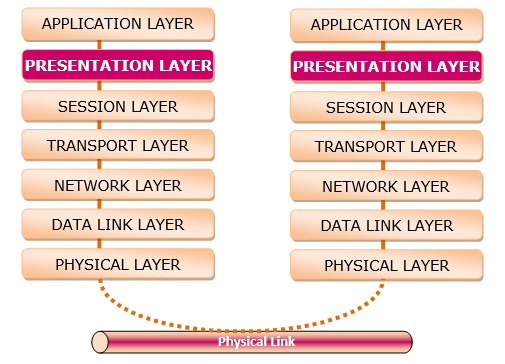 - It encodes the messages from the user dependent format to the common format and vice versa, for communication among dissimilar systems.