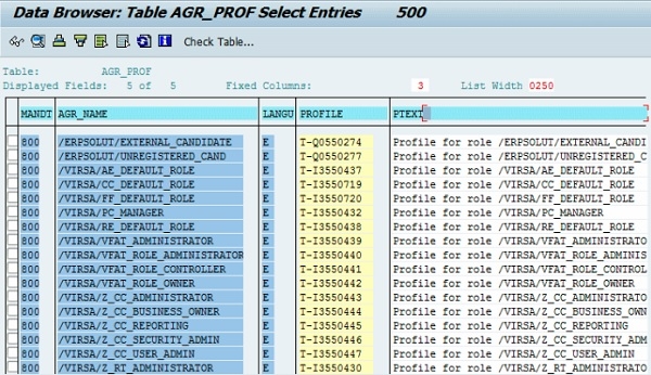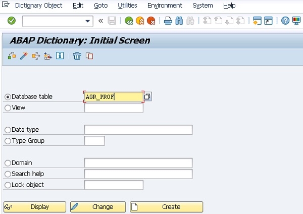 To view further details about this Table “AGR_PROF” and the data within it using the relevant SAP transactions such as SE11, SE80 or SE16. Below shows SE11 T-Code −