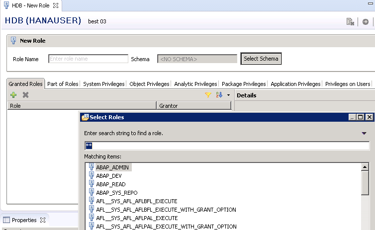 Roles tab is used to define the existing roles in HANA system and you can also create a new role in HANA system to add to user’s profile as per requirement.