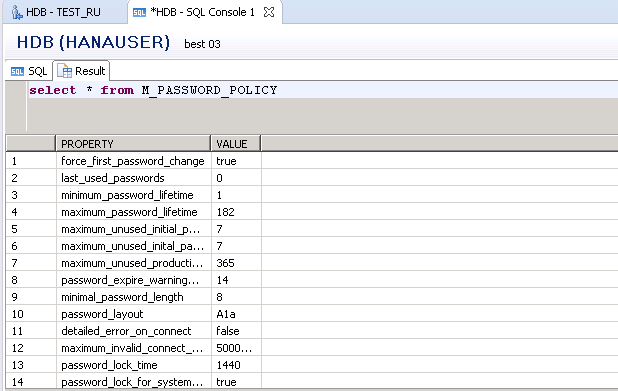 Viewing information in M_PASSWORD_POLICY System View in SAP HANA